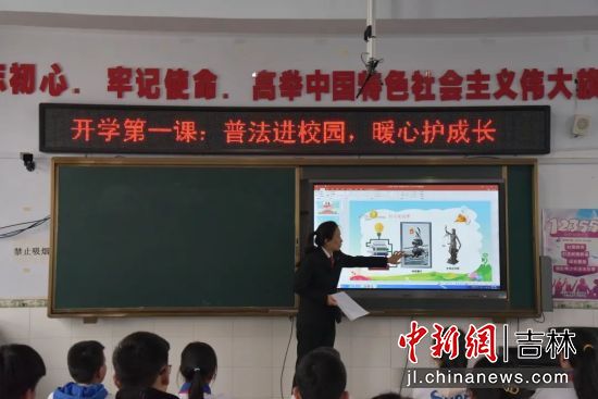 中新網吉林新聞3月1日電 (譚偉旗 姜美辰 徐萌)為進一步加強青少年法治宣傳教育,切實預防和減少青少年違法犯罪保護未成年人合法權益的發(fā)生,護航青少年健康成長。2月28日,柳河縣人民法院刑事庭的法官干警走進姜家店鄉(xiāng)中心校開展“開學第一課”普法進校園活動,為同學們上了一堂生動的法治教育課。
