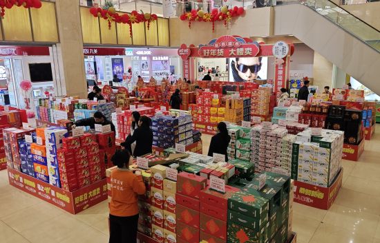 同日,延吉百貨大樓節(jié)日裝飾喜慶亮眼,新春氛圍感拉滿。一樓大廳內(nèi),特意設(shè)置了年貨專區(qū),堅(jiān)果、糖果、海產(chǎn)品、酒水禮盒整齊陳列,延邊特色產(chǎn)品、全國(guó)名優(yōu)好物應(yīng)有盡有,從家庭自用到走親訪友的禮盒套裝,再到日常餐桌的生鮮食材,品類豐富、一應(yīng)俱全。“現(xiàn)在都提倡健康生活,多買點(diǎn)水果、海產(chǎn)品,老人孩子都愛(ài)吃,禮盒送禮也體面,趁著優(yōu)惠多買點(diǎn)!笔忻駝⑴亢图胰苏奶暨x著干果禮盒與生鮮商品。