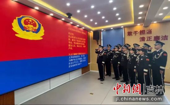 當天,該院全體司法警察身著警禮服整齊劃一、警容嚴整,面對警旗,莊嚴的宣誓:“我志愿成為人民法院司法警察,獻身于崇高的人民司法事業(yè),堅決做到對黨忠誠、服務人民、執(zhí)法公正、紀律嚴明……”