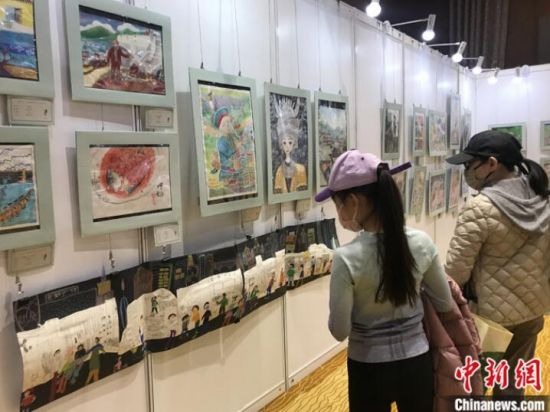 展覽主題為“藝‘述’家”,設(shè)“童畫天地”“當(dāng)代對(duì)話未來(lái)”和“一起飛翔”三個(gè)版塊。其中,“童畫天地”從兩萬(wàn)多幅兩岸暨港澳地區(qū)、馬來(lái)西亞華人地區(qū)的青少年畫作中精選出約250幅優(yōu)秀作品,呈現(xiàn)孩子們各自對(duì)“家”的理解與體驗(yàn);“當(dāng)代對(duì)話未來(lái)”通過(guò)展出藝術(shù)家李江的多件雕塑作品,引導(dǎo)民眾思考非物質(zhì)文化的保護(hù)與傳承;“一起飛翔”則攜手“蒲公英行動(dòng)”藝術(shù)公益項(xiàng)目,邀請(qǐng)?jiān)颇鲜【昂槭谢Z鄉(xiāng)中心小學(xué)學(xué)生,以版畫形式描繪基諾族文化特色,展現(xiàn)中華民族多元文化的獨(dú)特魅力。