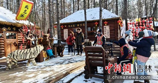 愛心玫瑰與雪人谷成為打卡熱點,百余個創(chuàng)意雪人錯落分布,雪雕玫瑰形態(tài)各異,游客爭相合影。關(guān)東文化園威虎山土匪寨角色扮演區(qū)人氣爆棚,游客換上土匪服飾,手持道具槍模擬“打土匪”互動,笑聲與吶喊聲中重現(xiàn)歷史場景!斑@比單純滑雪更有意思!”游客王先生興奮地表示,“土匪寨體驗讓我仿佛穿越回關(guān)東時代,文化元素讓冰雪活動更鮮活。”