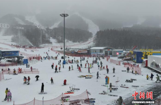 眾多滑雪愛(ài)好者來(lái)到吉林北大湖雪場(chǎng)。 吉林市冰雪試驗(yàn)區(qū)北大湖雪場(chǎng)供圖