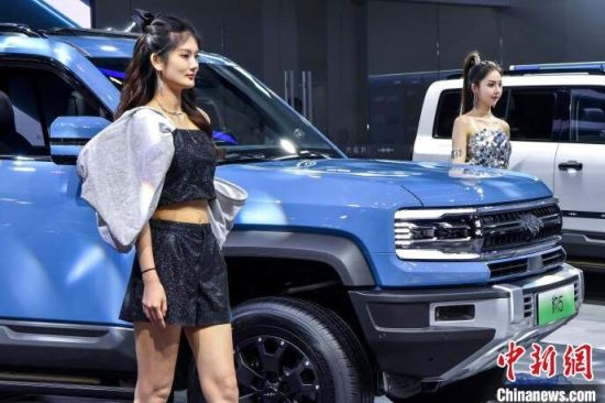 9月13日,海南海口,車模助陣海南金秋車展。當(dāng)日,因超強(qiáng)臺(tái)風(fēng)“摩羯”而兩度延期的2024海南金秋車展暨智能網(wǎng)聯(lián)新能源車展在海口舉行。作為臺(tái)風(fēng)災(zāi)后海南的首場(chǎng)車展,本次展出面積達(dá)5萬(wàn)平方米,共有近百個(gè)汽車品牌參展,其中新能源車型占比70%。中新社記者 駱云飛 攝