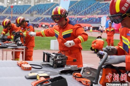消防指戰(zhàn)員在進(jìn)行無(wú)齒鋸組裝。 張瑤 攝