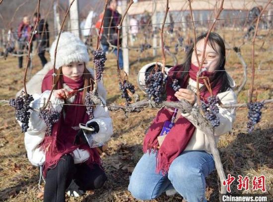 12月9日,吉林集安鴨綠江河谷,游客采摘冰葡萄。集安市所在的鴨綠江河谷與法國著名葡萄酒產(chǎn)地羅納河谷處于同一緯度,同屬世界葡萄酒黃金生產(chǎn)帶,當?shù)厮a(chǎn)的冰葡萄是釀制冰酒的主要原料。目前,鴨綠江河谷冰葡萄已經(jīng)進入最佳采摘時期。(完)