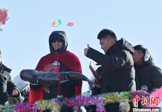 12月28日,吉林查干湖第23屆冰雪漁獵文化旅游節(jié)開(kāi)幕。當(dāng)天,在查干湖湖面上舉行的“頭魚(yú)”拍賣儀式上,“頭魚(yú)”拍出1199999元人民幣。  中新社記者 張瑤 攝