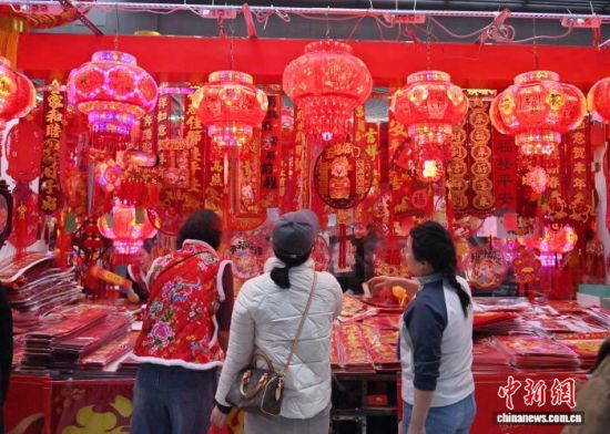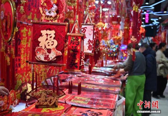 2月12日,長春一家商場的年貨區(qū)年味十足。隨著農歷馬年春節(jié)的臨近,各類生肖飾品、年節(jié)掛飾銷售持續(xù)升溫,琳瑯滿目的新春飾品吸引民眾駐足挑選。中新社記者 張瑤 攝